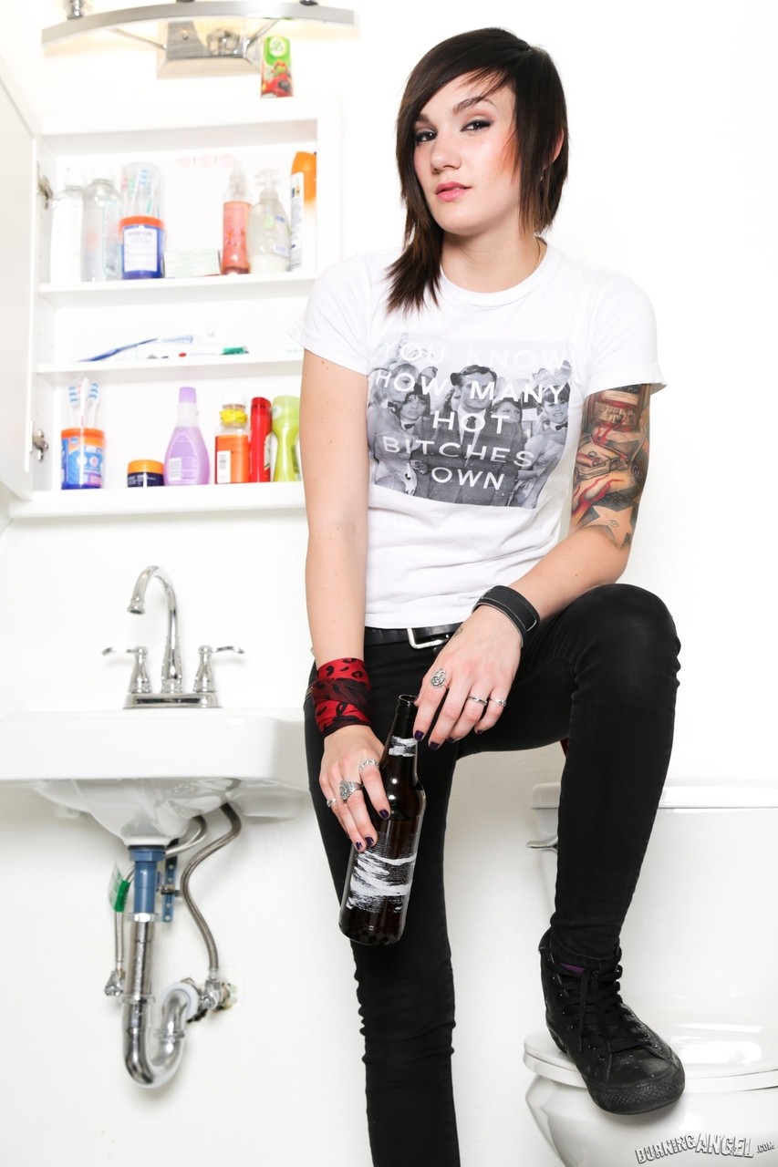 Leggy Lesbian Goth Nikki Hearts Enjoys Beer Naked Pussy Reveal In The Fet
